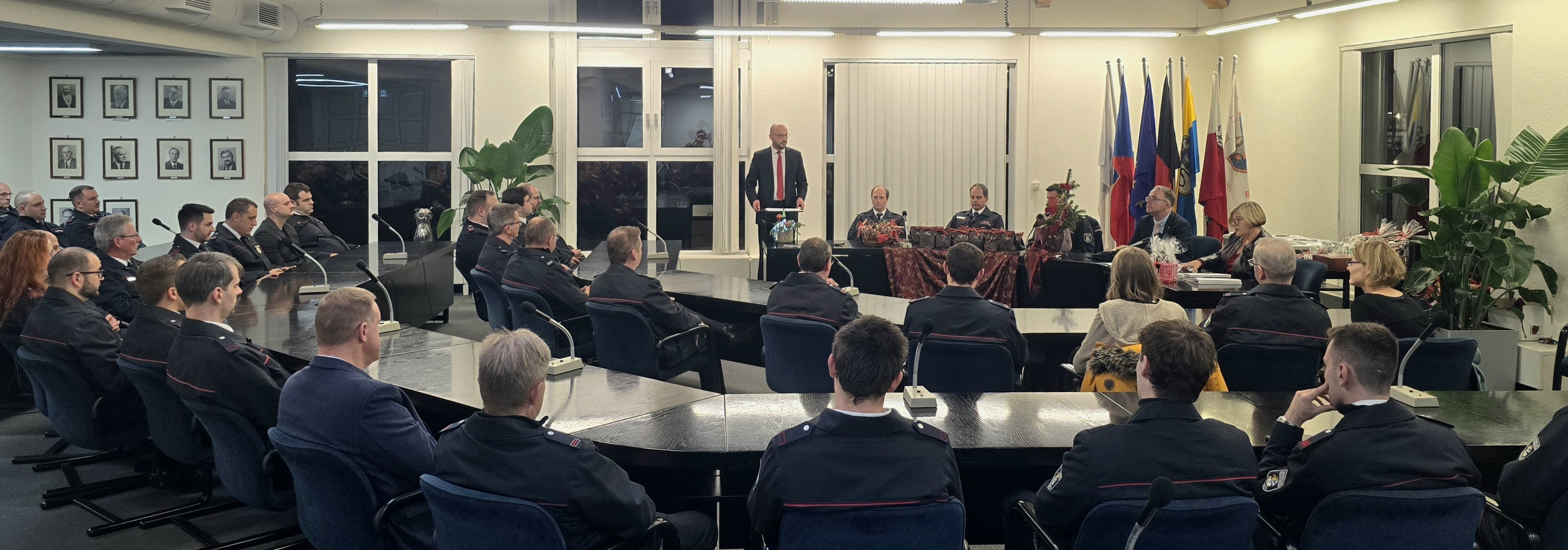 Den Abschluss des offiziellen Teils bildeten die Jahresrückblicke der Wehrleitung. Marco Himmighöfer, Benjamin Pöll und Björn Steidel blickten auf die Einsätze des Jahres zurück und verbanden dies mit persönlichen Anmerkungen zur Mannschaft, zu besonderen Herausforderungen und zum Zusammenhalt innerhalb der Feuerwehr.