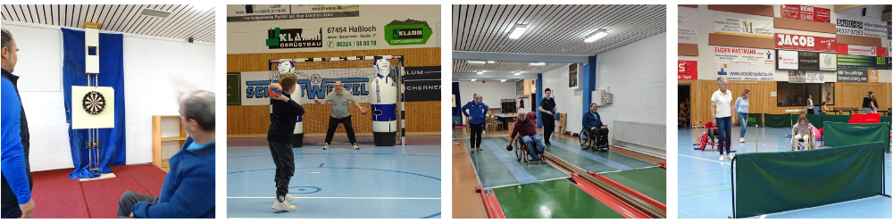 Etwas versteckt, weiter hinten an dem langen Flur gelegen, konnte man auf vier Kegelbahnen mit moderner Technik und fachkundiger Anleitung den Kegelsport ausprobieren. Mit ein wenig Übung funktioniert das erstaunlicherweise auch vom Rollstuhl aus sehr gut. Im selben Raum steht seit kurzem – sozusagen als Dauerleihgabe – auch eine höhenverstellbare Dartsscheibe, die man mit einem Handgriff von „Normalhöhe“ (Bullseye 1,73 m) auf Paradart (Bullseye 1,37 m) umstellen kann.