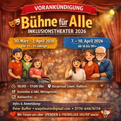 Das Projekt wird von dem Haßlocher Theaterpädagogen Peter Ruffer geleitet und knüpft an ein bereits 2025 erfolgreich umgesetztes inklusives Theaterprojekt an. Unterstützt wird das Angebot unter anderem vom Behindertenbeirat Haßloch sowie weiteren Partnern aus der Region.