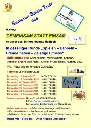 Der Seniorenbeirat freut sich auf viele interessierte Teilnehmerinnen und Teilnehmer, die unter dem Motto „Spielen, babbeln, Freude haben“ gemeinsam unvergessliche Nachmittage erleben möchten.