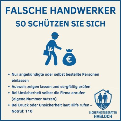 - Lassen Sie nur Handwerker oder Kontrolleure ein, die Sie selbst bestellt haben oder die vorher schriftlich angekündigt wurden.