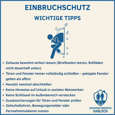 - Schließen Sie die Haustür grundsätzlich zweimal ab. Nur ins Schloss ziehen reicht nicht aus.