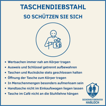 - Taschen und Rucksäcke immer geschlossen und mit der Öffnung zum Körper tragen