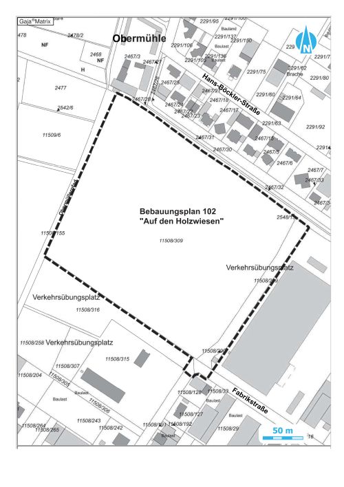 Der Entwurf des Bebauungsplans Nr. 102 „Auf den Holzwiesen“ mit Begründung und Umweltbericht sowie den nach Einschätzung der Gemeinde wesentlichen, bereits vorliegenden umweltbezogenen Stellungnahmen und ergänzenden Unterlagen wird