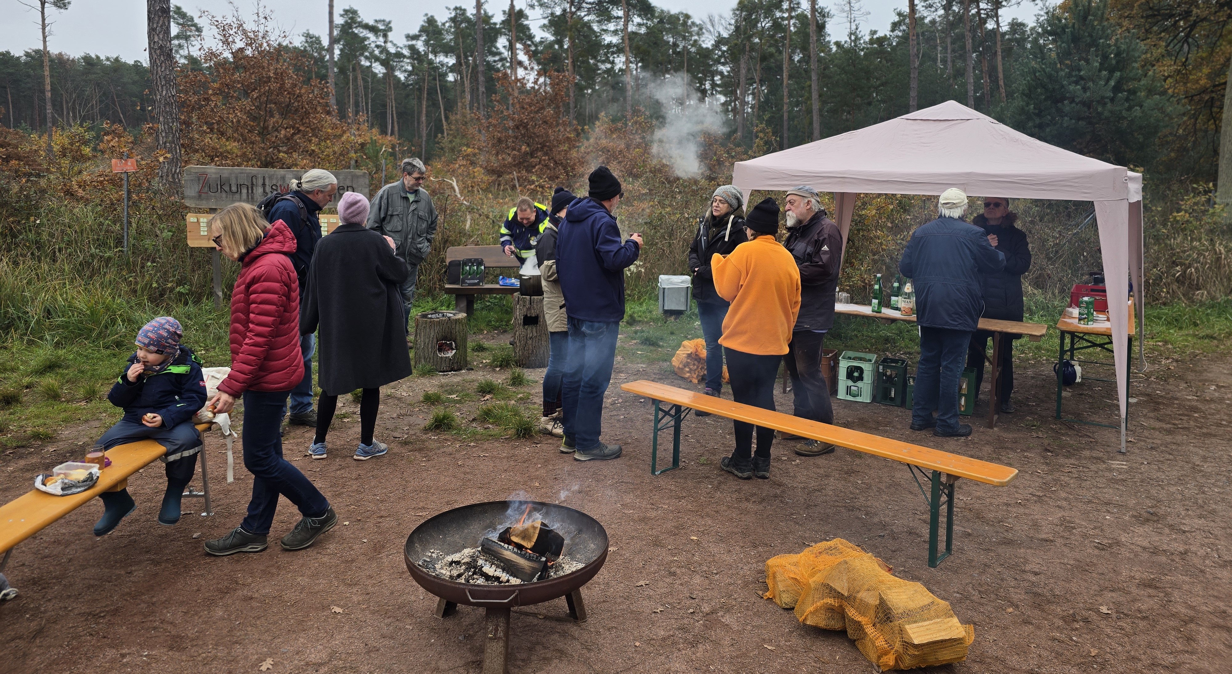 Nach getaner Arbeit versammelten sich alle noch einmal am Lagerfeuer. Bei warmen Getränken und einer kleinen Stärkung blieb Zeit für Gespräche und Austausch.